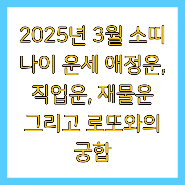 2025년 3월, 소띠 여러분의 운세가 궁금하십니까? 성공적인 삶을 향한 핵심적인 정보 를 제공하고자 합니다. 본 포스팅에서는 2025년 3월 소띠의 애정운 , 직업운 , 재물운 을 심층적으로 분석하고, 로또와의 궁합 까지 면밀히 살펴보겠습니다. 특히, 재물 관리 전략 에 대한 전문적인 조언 을 제시하여 여러분의 금전적 안정 을 위한 실질적인 도움을 드리고자 합니다. 자, 그럼 2025년 3월, 소띠에게 펼쳐질 미래 를 함께 탐험해 보시겠습니까?