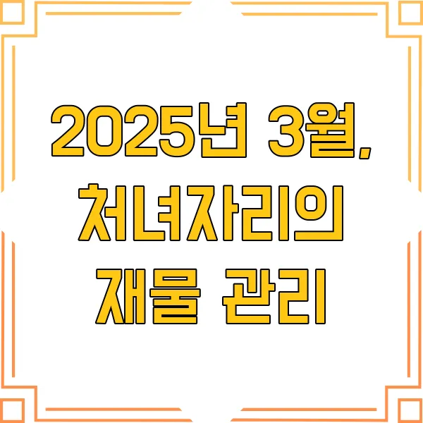 2025년 3월, 처녀자리의 재물 관리는 ' 데이터 기반 의사결정 ', ' 분산 투자 ', ' 가치 투자 ', ' 절세 ' 이 네 가지 키워드에 집중해야 합니다. 마치 숙련된 재무 설계사처럼, 냉철한 분석과 전략적인 계획을 통해 재정적인 안정을 확보하고 미래를 위한 투자를 준비하는 현명한 처녀자리가 되시길 바랍니다. 변동성이 큰 시장 상황 속에서도 흔들리지 않고 꾸준히 성장하는 3월을 만들어 나가세요!