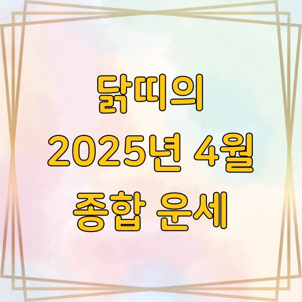 자, 이렇게 2025년 4월 닭띠의 종합 운세를 꼼꼼하게 살펴보았는데요. 전반적으로 긍정적인 흐름 속에서도 변화의 가능성이 공존하는 시기라는 것을 잊지 마세요. 마치 롤러코스터처럼 짜릿한 상승과 하강을 경험하게 될지도 모릅니다. 긍정적인 에너지로 힘차게 나아가되, 변화에 유연하게 대처하는 지혜를 발휘한다면 4월의 롤러코스터를 성공적으로 완주할 수 있을 거예요! 닭띠 여러분들의 4월을 진심으로 응원합니다! 화이팅!!
