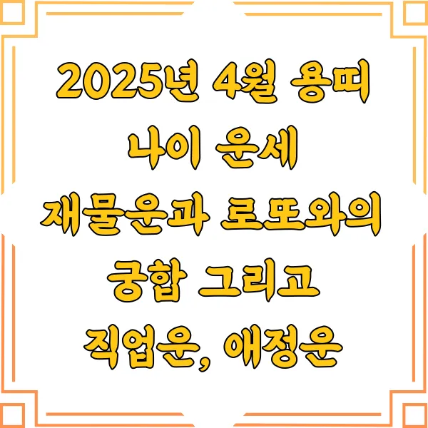 2025년 4월 , 용띠 여러분의 재물운, 로또와의 신비로운 궁합 , 그리고 꿈을 향한 직업운 까지, 미래를 엿볼 수 있는 특별한 시간 을 준비했습니다.