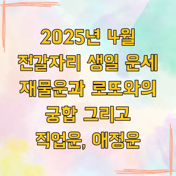 4월의 봄바람처럼 당신의 마음에도 따스한 기운이 가득한가요? 아니면, 아직 차가운 겨울의 끝자락에 머물러 있나요? 전갈자리의 2025년 4월은 마치 롤러코스터처럼 짜릿한 재물운의 변화를 예고 하고 있습니다. 예측 불가능한 흐름 속에서 과연 로또 당첨의 행운 을 거머쥘 수 있을까요? 이 글에서는 전갈자리의 4월 재물운 을 깊이 있게 들여다보고, 로또와의 신비로운 궁합 을 탐구해보겠습니다. 또한, 당신의 숨겨진 재능을 꽃피울 수 있는 직업운 과 사랑의 향방을 알려줄 애정운 까지, 4월의 모든 것 을 펼쳐 보여드리겠습니다. 자, 이제 신비로운 예측의 세계로 함께 떠나볼까요?