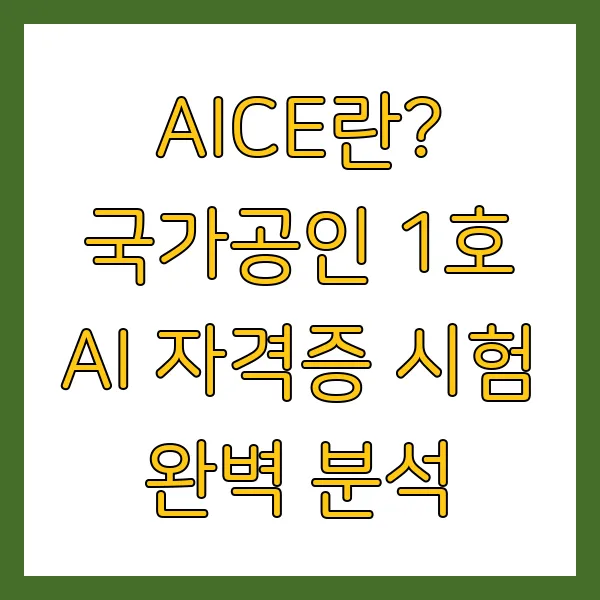 인공지능 시대, 핵심 인재로 발돋움하기 위한 필수 관문! 바로 국가공인 1호 AI 자격증, AICE 입니다. AICE는 단순한 자격증을 넘어 여러분의 AI 전문성을 증명하는 강력한 무기가 될 것입니다. 이 글에서는 AICE의 모든 것을 파헤쳐, 여러분의 성공적인 AI 전문가 커리어를 위한 완벽 가이드를 제공합니다. AICE 시험 정보, 도입 배경, 주요 특징, 미래 가치, 응시 전략까지, 지금 바로 확인하세요! #AICE #AI자격증 #인공지능자격증 #AI전문가 #국가공인자격증