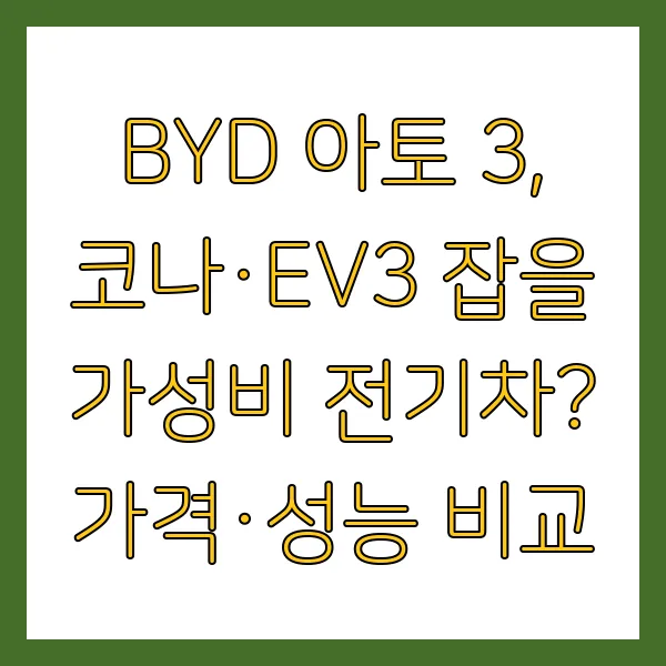 BYD 아토 3 vs. 코나·EV3, 성능 비교 분석